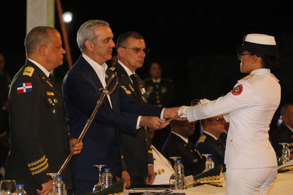 Un momento crucial del acto fue la lectura de la Orden General de Ascenso y la posterior imposición de las insignias de grado de segundo teniente, seguida de la solemne Toma de Juramento, dirigida por el presidente Abinader, donde los nuevos oficiales juraron lealtad a la Constitución y a las leyes de la República.