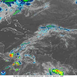 Santo Domingo, R.D., jueves 30 de abril de 2026.- El Instituto Dominicano de Meteorología (Indomet) informó que, la humedad e inestabilidad asociada a la incidencia de una vaguada en varios niveles de la troposfera, en combinación con el viento del noreste, continuará generando aguaceros en varias localidades del país este jueves.