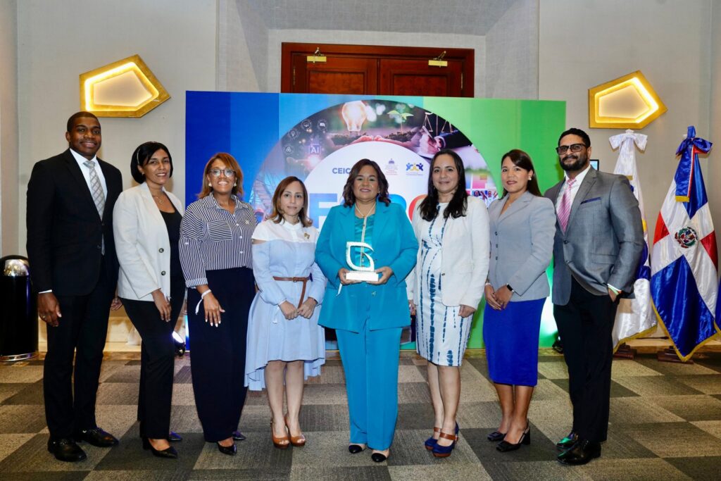 El reconocimiento fue recibido, en representación del INDOTEL y su presidente, Guido Gómez Mazara, por la directora de Licitaciones y Contratos Públicos, Ruth Henríquez, acompañada de colaboradores de la institución.