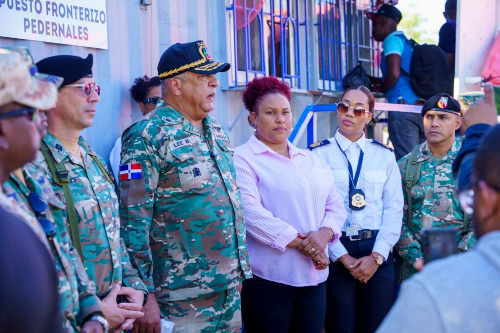 PEDERNALES.- El director general de Migración Vicealmirante Luis Rafael Lee Ballester, ARD., acompañado por autoridades civiles y militares, con responsabilidades en las provincias fronterizas de Pedernales a Dajabón, inició el año 2026 con un recorrido de supervisión de los controles migratorios, en especial donde se desarrollan los mercados binacionales, con el propósito de dar seguimiento a las operaciones de la institución en la zona fronteriza terrestre y marítima, asi como identificar las principales necesidades de acceso y control, para garantizar la biometrización del flujo de personas que entran y salen del país.