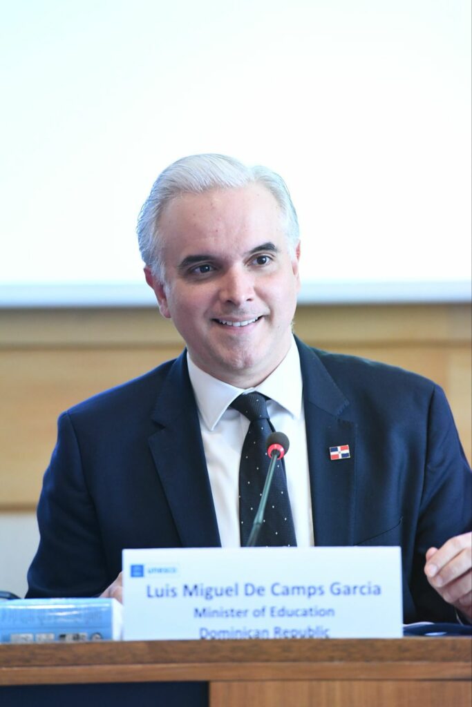 El ministro de Educación, Luis Miguel De Camps, destacó la reciente aprobación de la Estrategia Nacional de Competencias Digitales como un paso clave para fortalecer el sistema educativo preuniversitario dominicano, durante su participación en un panel de alto nivel celebrado en la sede de la UNESCO, en el marco de la reunión anual de la Coalición Mundial por la Educación.
