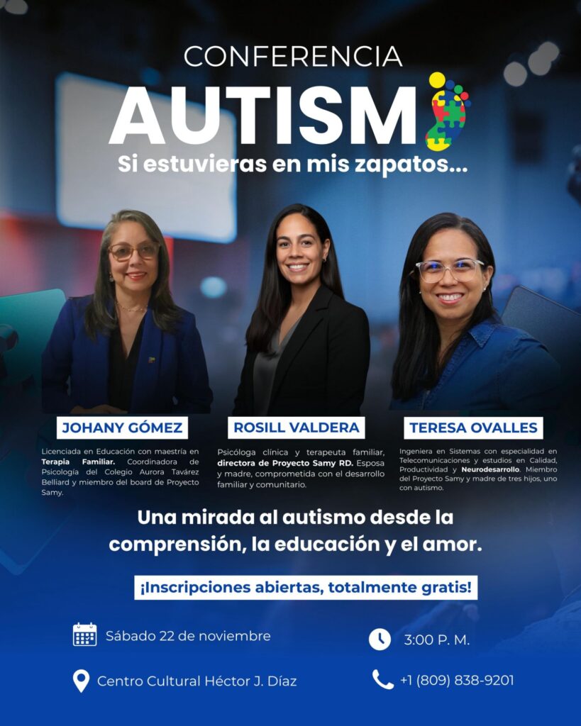 La comunidad de Azua tiene una cita ineludible con la comprensión y la inclusión, ya que el próximo sábado 22 de noviembre se celebrará la conferencia gratuita "Autismo: Si estuvieras en mis zapatos…". El evento, diseñado para educar, sensibilizar y ofrecer herramientas prácticas sobre el Trastorno del Espectro Autista (TEA), tendrá lugar en el Centro Cultural Héctor J. Díaz a las 3:00 P. M.